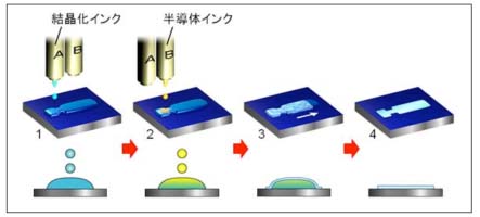 Researchers from the National Institute of Advanced Industrial Science and Technology (AIST) in Tsukuba, Japan hoped to get around the problem of self-crystallization, inherent in other InkJet/transistor making processes, which results in spreading effects that make it difficult to print uniformly.