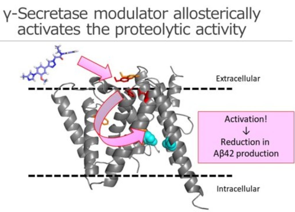 γ-Secretase is an enzyme responsible for Aβ generation. Thus, γ-secretase modulators, which specifically inhibit Aβ42 generation, have been developed as therapeutics against AD without side-effects. However, molecular mechanism whereby γ-secretase modulators regulate enzymatic activity remained unknown.