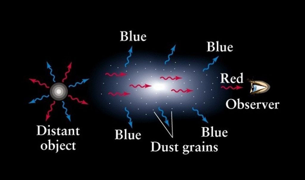 Cosmic dust—dust in space—includes intergalactic dust, interstellar dust, interplanetary dust and circumplanetary dust. It causes the scattering of electromagnetic radiation between the source and the observer, termed cosmic dust extinction. Because blue wavelengths of light are more affected by scattering, extinction causes objects to appear redder than they actually are.