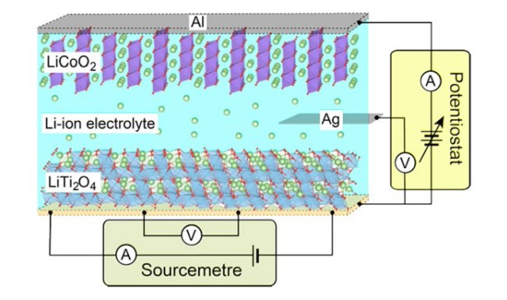 Yoshimatsu and his colleagues applied an electrochemical potential to thin films of LiTi2O4 in a set up resembling a lithium-ion battery. When the potential is applied lithium ions intercalate into LiTi2O4, ‘overdoping’ the material.
