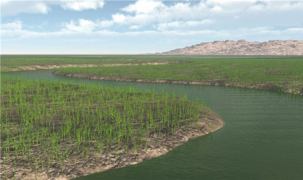 “Soils are made by plants and animals, and they have a great stabilizing effect, taking up rainwater like a sponge and limiting erosion rates. From this time onward, river systems changed their type, from fast-flowing, to slower-moving, meandering streams.”