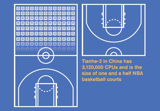 To return to the airport analogy, if each customs counter takes up two square meters of space, to have a thousand of them set up would require proportionately more room. This is why supercomputers like the Tianhe-2 in China occupy a whopping 720 square meters of space. That’s the size of one and a half NBA basketball courts!