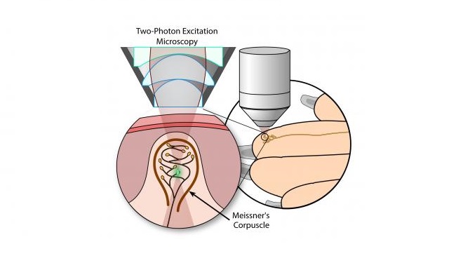Using two-photon imaging, researchers in Japan have observed the activity of mechanoreceptors in the fingertips of live mice.